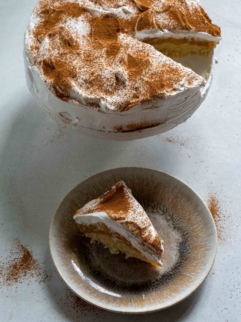 Die Torte schmeckt am besten eiskalt und gut durchgezogen. Wer sie optisch verfeinern möchte, kann die Sahne mit einem Spritzbeutel auftragen oder dünne Apfelscheiben dekorativ auflegen.